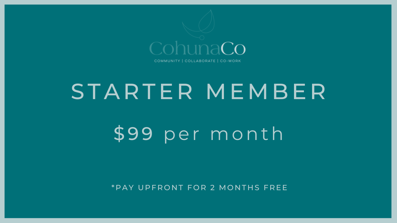 Whether you’re running a business, working remotely, studying, or just need a productive place to focus, CohunaCo offers flexible membership options with real value — and includes 24/7 access to our spaces.